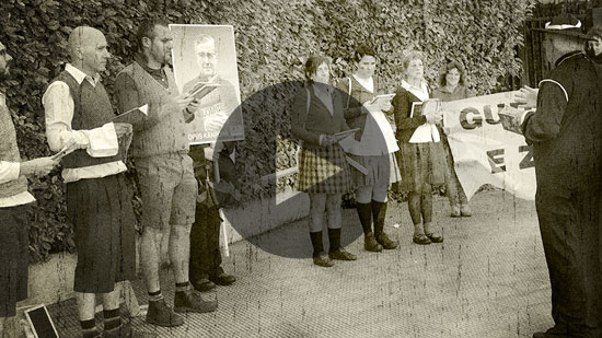 "Gure diruarekin ez – No con nuestro dinero" lelopean, LAB-Irakaskuntzako militanteek antzezpen satirikoa egin dute Opus Deiren Irabia eskolaren parean, segregazioan oinarritutako eskolak diru publikoan finantzatu ez daitezen exijitzeko.