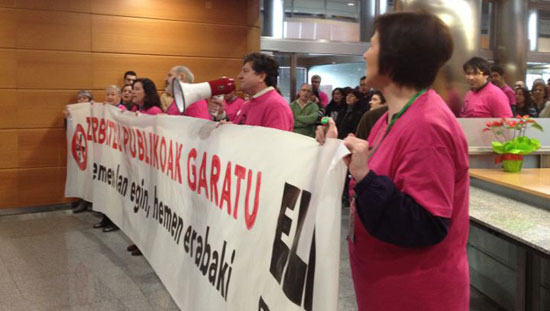 • PNVk zuzendutako Jaurlaritzak Rajoyren neurriak ezartzeko sasi-negoziazioa egiten duelako plantak egin ditu. Jaurlaritzak ez du negoziazio eskubidea ezta negoziazio euskal esparrua defendatzeko saiorik egin. Rajoy-ren neurri nagusiak hemen ere aplikatuko baitituzte: lanaldia handitu, soldata hamaikagarrenez izoztu -behin 2010ean %5 murriztu eta gainerako urteetan izoztu zelarik, eta iaz gabonetako paga kendu zutelarik- , gaixotasun bajetako osagarriak Estatuan bezala eta abar.