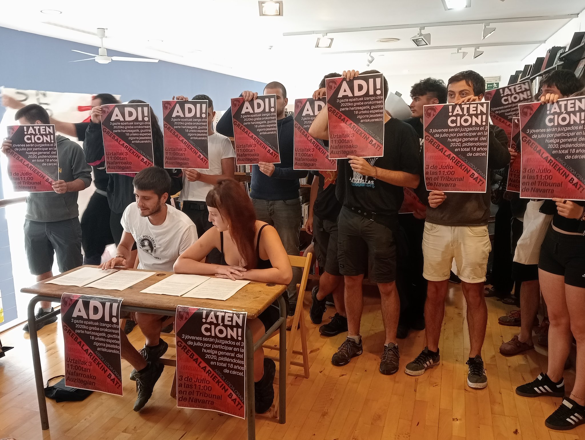 LAB sindikatuak gogor salatu nahi du Fiskaltzak 18 urteko zigor eskaera gogorrak egin dituela beste hiru gazteren aurka, uztailaren 3an egingo den epaiketa batean. 2020ko greba orokorrarekin lotutako akusazioengatik egindako aepaiketak akordioekin ixteko erabilitako irizpidearen kontra egin du oraingoan Fiskaltzak. LAB sindikatuak uztailaren 3an eginen den elkarretaratzean parte hartzera deitzen du; 11:00etan izanen da, Iruñeko Justizia Jauregiaren parean.