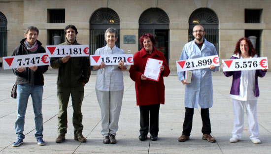 2) Eros ahalmena berreskuratu. 2012ko 14. lansaria osoa itzuli. Lansariak handitu eros ahalmena bermatzeko eta galdutako lansariak berreskuratu arteko %2ko igoera urteko. Aldi baterako langileei finkoek dituzten kontzeptu guztiak ordaindu (gradua, familia laguntza …).