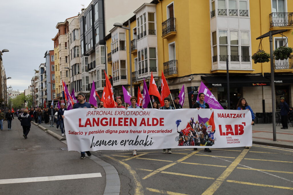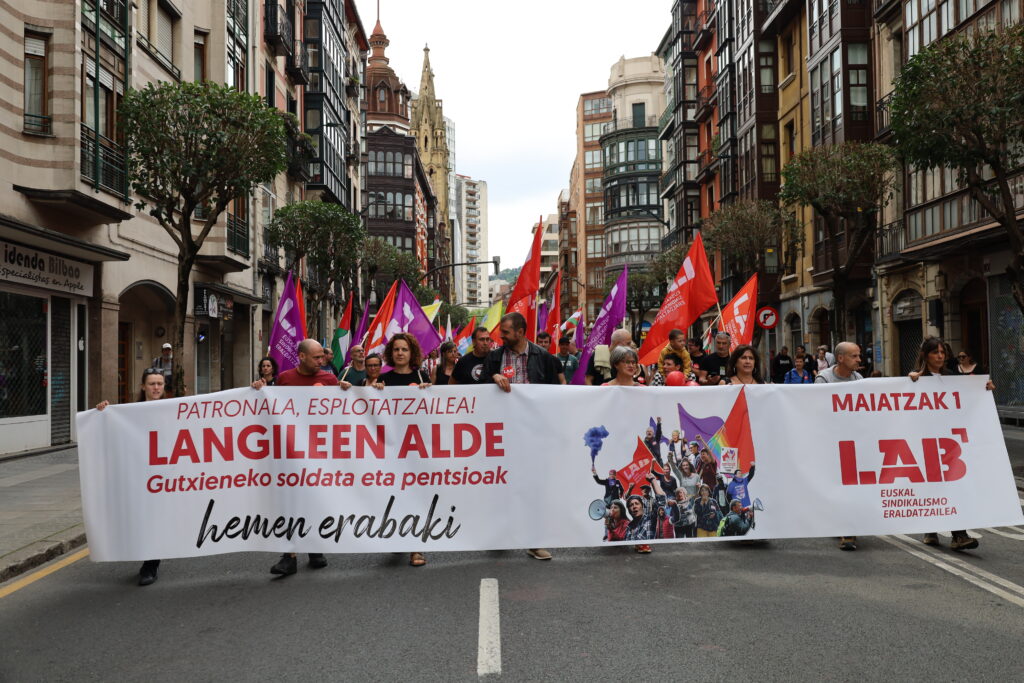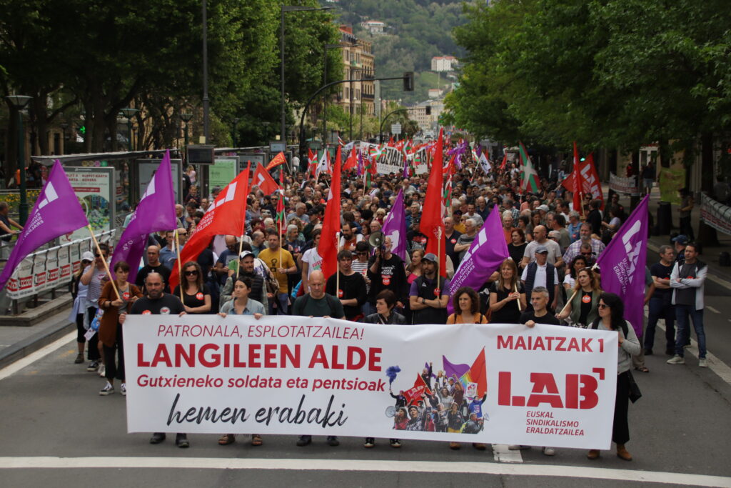 Donostian, Gasteizen, Bilbon, Iruñean zein Tuteran, Baionan (beste sindikatuekin batera) eta Maulen, Euskal Herri osoan hainbat mobilizazio propio egin ditu LABek Maiatzaren Lehen honetan. Confebask-CEN, esplotatzaileak! Langileen alde, gutxieneko soldata eta pentsioak hemen erabaki aurtengo lelotik tiraka, langileen alde tinko eta patronalari buruz gogor agertu da LAB.