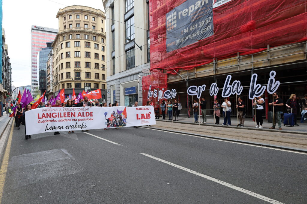 Norabide aldaketa aldarrikatzen du LABek Maiatzaren Lehen honetan. LABeko bozemalearen hitzetan, “Euskal Herriak bakearen, parekidetasunaren, justizia sozialaren eta herri burujabetzaren bidean aurrera egin dezake eta egin behar du, eta burujabetza handiagoaren premia du horretarako; burujabetza handiagoa, hain zuzen ere, enplegua, zaintza eta aberastasuna banatzeko; burujabetza handiagoa, produkzio eta kontsuko eredua aldatzeko; burujabetza handiagoa, bizitza erdigunean jarriko duen eredu ekonomiko eta soziala eraikitzeko; eta burujabetza handiagoa, bertara datozenei harrera egiteko, sarrera ukatzen zaienak edo Europako lege arrazistek kanporatzen dituztenak hartzeko”.
