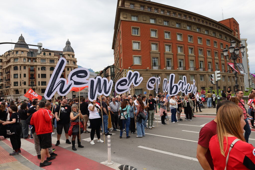 Era berean, euskal langileak zoriondu ditu “Euskal Herrian badagoelako burujabetzaren, eraldaketa sozialaren eta eraldaketa feministaren aldeko esparru zabala”, eta azken urteetako borroka sindikal eta sozialei esker agenda politikoak “gai garrantzitsuak” kokatu direlako: “osasun sistema, zaintza, etxebizitza, pentsioak eta gutxieneko soldata”.