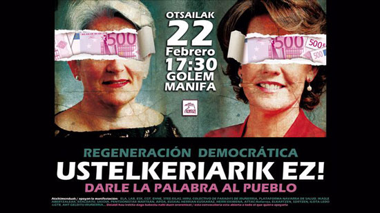 Aldaketa bikoitza premiazkoa da Nafarroan: Gobernu aldaketa eta eredu aldaketa. Ustelkeria kasu ugariak iraganaren parte izan daitezen, Errenta Aitorpena egin ahal izan dezagun lapurtzen digutela sentitu gabe. Nafarroa hainbeste urtez odolustu duen Erregimen nafar-espainolarekin amaitu eta benetako demokrazia ezarri beharra dago, non geure etorkizunaren eta baliabide publikoen jabe izango garen, non langileriaren eskubide sozialak bermatuko diren.