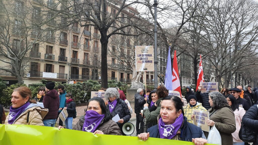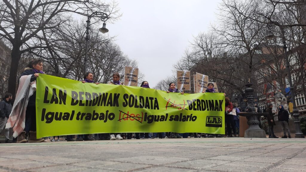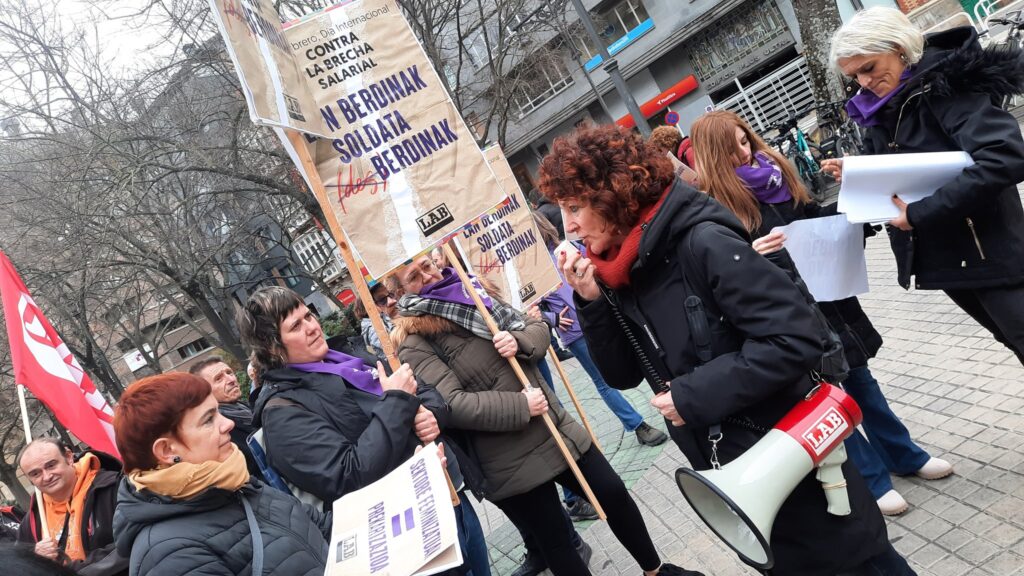 Maddi Isasi Idazkari Feminista Bilbon egon da, eta salatu du lan beragatik eta balio bereko lanagatik ez dela berdin kobratzen gaur egun Euskal Herrian, lan berdinagatik soldata desberdina aldarrikatuz. Soldata arrakala egiturazkoa dela adierazi du Isasik: “Soldata arrakala datu ofizialek esaten diguten baino askoz altuagoa da, sektore feminizatu eta maskulinizatuen artean egiten badugu konparaketa, kasu batzuetan %90era iristen baita”. Adibide zehatzak ere jarri ditu. Gipuzkoan, eraikuntzako biltegiko peoiak, helduen egoitzetako pareko kategoria duen langile batek baino %90,30 gehiago kobratzen du. Beraz, ia ia soldata bikoitza du. Nafarroan, metaleko peoi arruntaren soldata, helduen egoitzatako kategoria bereko langilearen soldata baino %81,45 handiagoa da.