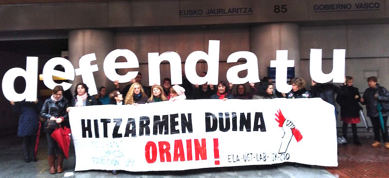 Borrokan dira Hezkuntza Saila eta EHUko garbiketako langileak, LAB, ELA, UGT, ESK eta CCOO sindikatuok deituta. Hala, elkarretaratze bat egin dute gaur Bilbon, Eusko Jaurlaritzaren egoitzaren aurrean, eta lan hitzarmen duin bat aldarrikatu dute berriro.
