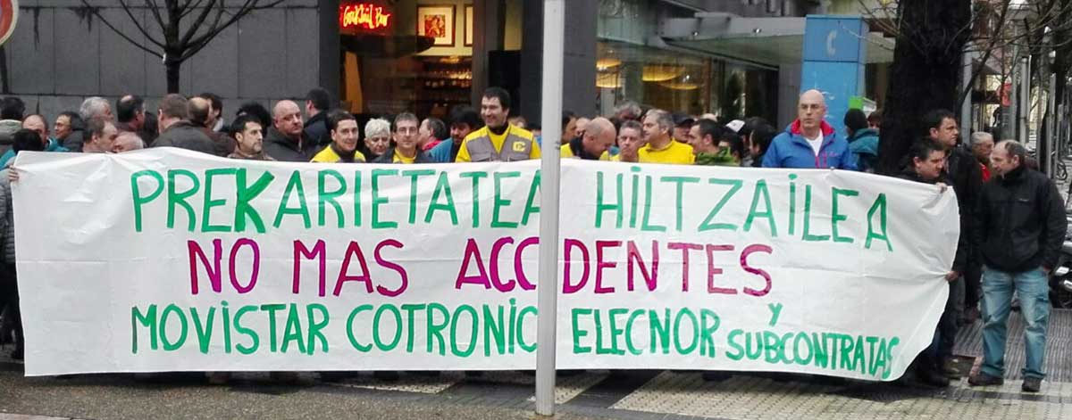 Elkarretaratzea egin dugu telefono azpiegituretan ematen diren lan istripuak salatuz. Istripu hauek, lan baldintzen prekarizazioa eta telefono azpiegituren mantenu faltari loturik daude. Horrez gain azpimarratu nahi dugu onartezina dela Telefónica bezalako enpresa bateko, azpiegiturak honelako balditza kaskarretan edukitzea, langileak arriskuan jarriz.