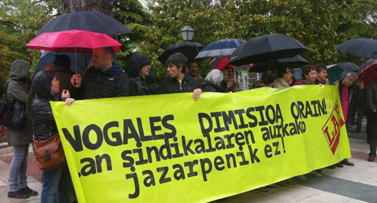 • 2011ko abenduan Patxi Lopezen gobernuak murrizketa gehiago eta bortitzago egitearekin mehatxatu zituen ordezkari sindikalak, hauek onartzen ez bazituzten Jaurlaritzatik erabakitako murrizketa-neurriak. Eta horrela gertatu zen! Jaurlaritzak 2012rako borondatezko aurrejubilazioetarako primak irakasle guztiei kentzea erabaki zuen. Eta Hezkuntza Saileko Kabinete burua zen Javier Nogalesek aurrejubilazioa eskatu zuen diru-laguntza hori jaso ahal izateko. Eta hori da LABeko ordezkariek eta Administrazioko langileek publikoki eta mobilizazioen bidez salatu zutena: Javier Nogelesen etika falta. Berak informazio pribilegiatu hori erabili zuen beste langileei kendu behar zietena eskubidea, kendu baino lehenago berak lortzeko. Eta horregatik salaketa publiko horren eremuan Javier Nogalesek kereila bat jarri zuen mobilizazioetan megafonoa eskuan zeraman delegatuaren kontra, Patxiren kontra. Zigortu nahi dute langile guzti horien buruan zihoan ordezkari sindikala. Zigortu nahi dute langileak antolatzea eta mobilizatzea, azken finean lan sindikala.