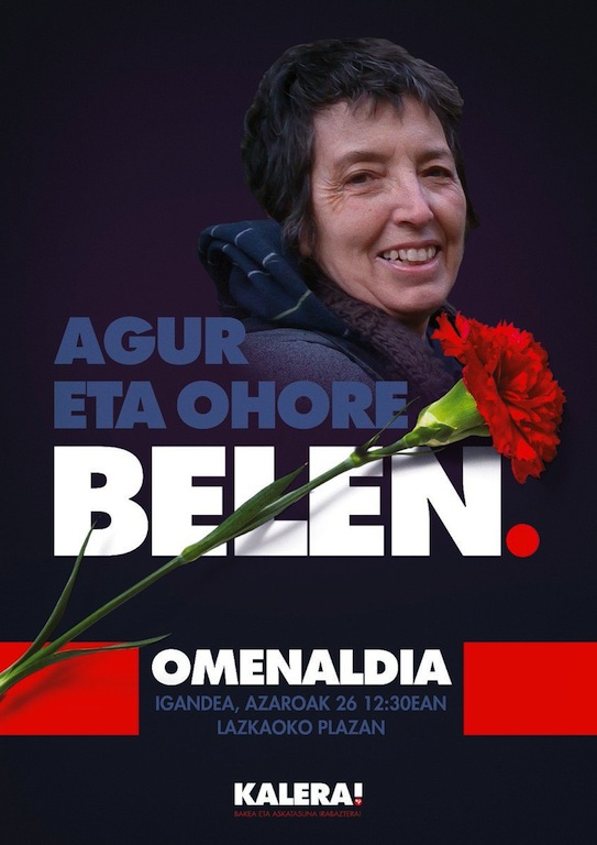 LABek doluminak eskaini nahi dizkie Belen Gonzalezen senideei, lagunei, ingurukoei eta ezker abertzalearen familia osoari. Esan nahi diegu ez dugula etsiko euskal preso politiko guztiak kalera atera arte, eta ez dugula etsiko herri honen askatasuna eta bakea lortu arte.