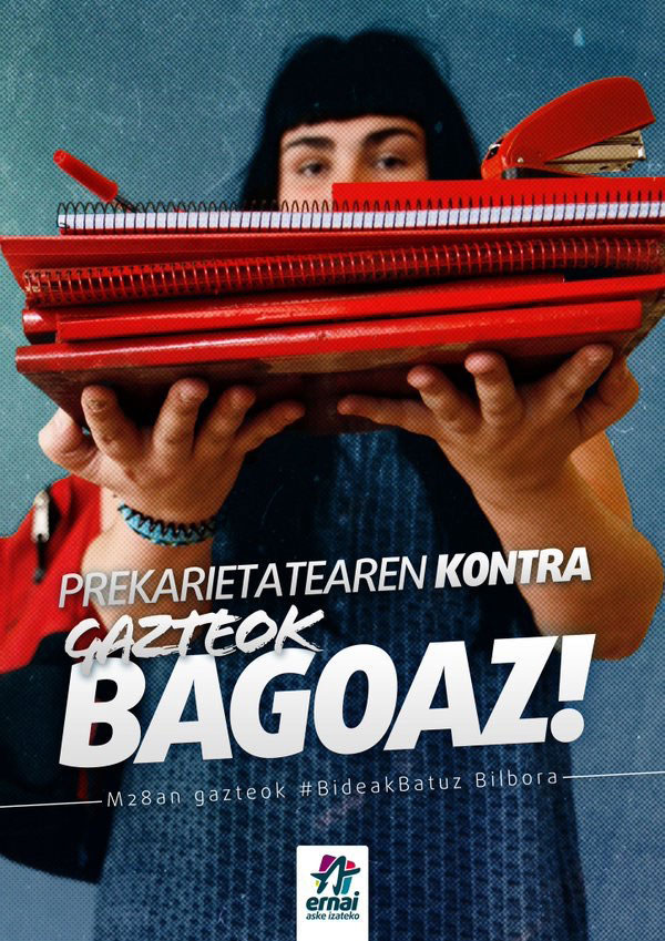 Ernaiko kideok, gazte mugimenduarekin batera, eta herri mugimenduarekin elkarlanean, askapen prozesuaren baitan dugun onena emateko prest gaude. Maiatzaren 28an ere Bilboko kaleetan elkartuko gara, prekarietatearen aurkako borrokan pausu bat aurrera eginez eta bideak batuz. Obedientziaren aurrean, desobedientzia. Sumisioaren aurrean, intsumisioa. Burugabetasunaren aurrean, burujabetza eta dependentziaren aurrean, independentzia.