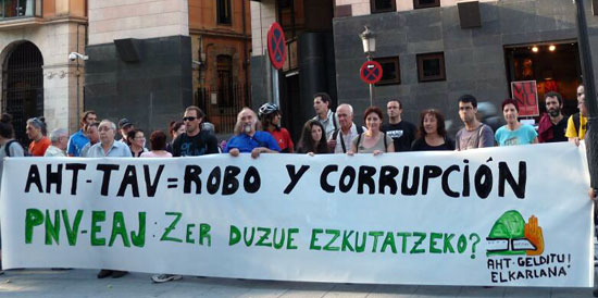 Ekitaldia propagandistikoa burutu zuten atzo krisia bukatzen ari dela beraien diskurtsoetan esaten ari diren Madrilgo PPren Gobernuak eta Lakuako EAJren Gobernuak. Horrelako azpiegiturak, zeinek gutxi batzuen negozio interesei bakarrik erantzuten dien diru publikoz ordaintzeak ekarri digu bizi dugun egoera ekonomiko eta sozial larri honetara, eta orain ere, bide horretan tematurik jarraitzen dute langileria miseriara kondenatuz.