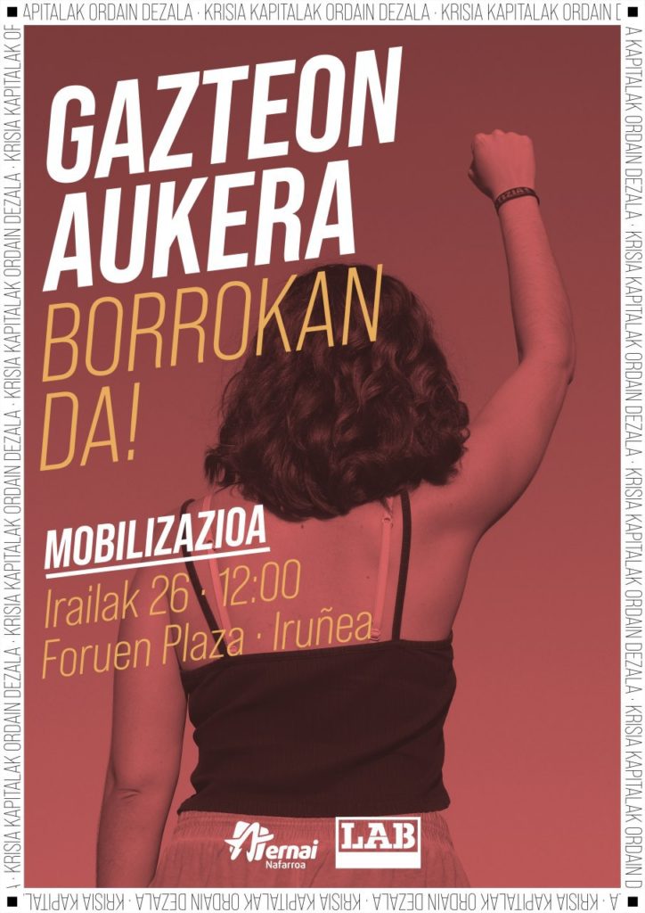 LABek eta Ernaik langileei dei egiten diete irailaren 26an Iruñean mobilizatzeko, gazte langileen etorkizunaren alde