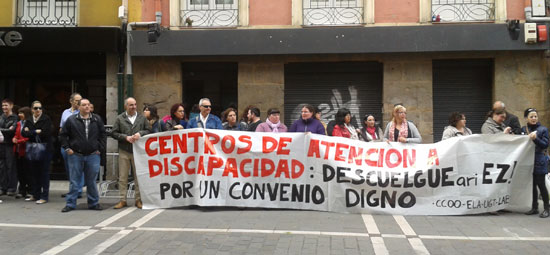 Ayer coincidiendo con la 9ª reunión de la mesa negociadora del convenio de centros de atención a personas con discapacidad, los sindicatos participantes en la mesa (CCOO, ELA, UGT y LAB), realizarón una movilización ante el Tribunal Laboral de Navarra para denunciar la desvinculación de la ANAP de la misma y la actitud mantenida por las empresas del sector.