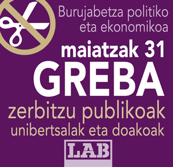 Greba eta mobilizazioei esker, honezkero ezin diote inori ziririk sartu. Lehenik harria bota eta orain eskua ezkutatu nahian dabiltza, Jimenez eta Lopez bezala Nafarroan eta EAEn, nortzuk behin murrizketak babestu eta ezarri ondoren propaganda hutsezko keinuak egiten dituzten, halako erabakiengandik aldendu nahian. Hemen inor ez omen da ezeren erantzule.