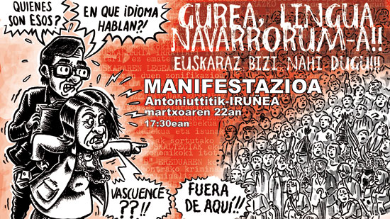 Bide horretan, dei egiten diogu langile klaseari, martxoaren 22an Iruñean egingo den manifestazioan parte hartzera eta larunbatetik aurrera ere, euskararen kontrako erasoei euskararen aldeko borrokarekin erantzutera.