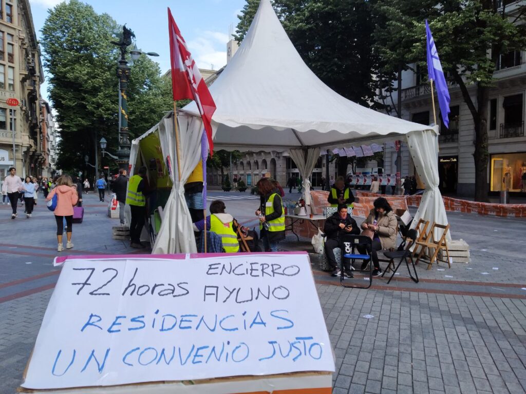 Astelehenaz geroztik greban dauden Bizkaiko egoitzetako langileek atzo abiatutako 72 orduko baraualdiaren bigarren eguna dute gaurkoa, eta bertatik desalojatzeko mehatxua dute beren gain, udaltzainak hainbatetan bertaratu direlarik atzo iluntzeaz geroztik. Zaintzarekin negozioa egitea helburu duen eredu merkantilistari jarraikiz ezartzen zaizkien baldintza eskasak salatzen dihardute beharginek, eta lan horiek publiko izatea aldarrikatzen dute. LABeko koordinatzaile orokorra, Garbiñe Aranburu, aldundiaren aurreko karpara bertaratu da goizean, grebalariei babesa eta esker ona adierazteko.