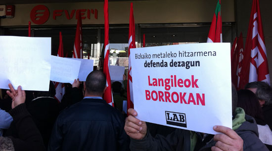 Bizkaiko Metalgintzako delegatuek manifestazioa egin dute patronalaren (FVEM) egoitzaraino Herrialdeko Hitzarmenaren defentsan. Bertan, hitzarmenaren egoera larria eta LABek desagertzen ez duela utziko esaten zuen gutun bat helerazten saiatu dira, baina ez diete barrura sartzen utzi.