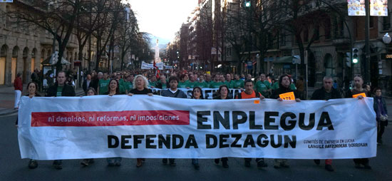 Milaka pertsonek Bilboko eta Iruñeako kaleak bete dituzte Borrokan diren Enpresa Batzordeek deitutako manifestazioen deialdiari erantzunez. "Enplegua defenda dezazun" lelopean gatazkan diren enpresa ezberdinetako langileen aldarrikapenak ere ozen entzun dira. Manifestazioan Ainhoa Etxaide, LABeko idazkari nagusiak parte hartu du eta enpleguaren aldeko defentsa eraginkor bakarra langileen aldetik etorri ahal dela adierazi du.
