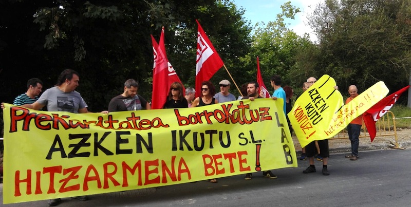 Jakin badakigu, gaur egun, Azken Ikutu ez dela hitzarmena betetzen ez duen enpresa bakarra. Ibai Aurrez enpresari ere salaketa jarri diogu. Argi utzi nahi dugu, ez dugula inola ere, gure eskualdean esklabutza egoerarik onartuko. Enpresariek jakin dezatela, LABek dituen baliabide eta energia guztiak erabiliko dituela horretarako.