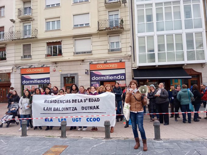 LAB, ELA, UGT eta CCOO sindikatuok lan baldintza duinak aldarrikatu ditugu gaur Arabako helduen egoitzetako langileentzat. Horretarako, elkarretaratze bat egin dugu Aldundiaren aurrean, hitzarmenaren defentsan.