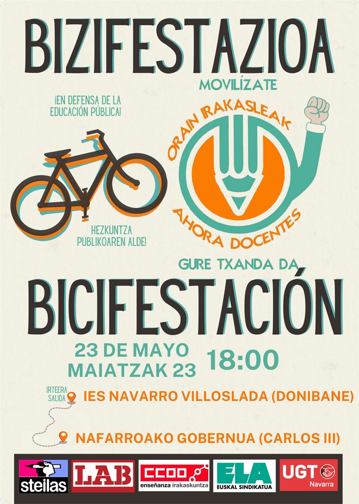 Bide batez, dei egiten diegu irakasleei -eta baita hezkuntza-komunitate osoari ere- bizikleta eta patineteekin egingo den errebindikazio-martxa batera.