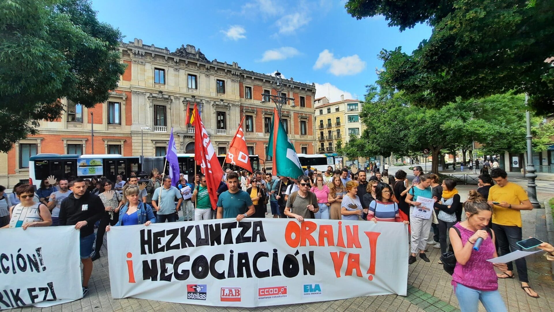 egoeran aurkitu gara. Administrazioko beste sektore batzuetan akordioak lortu diren arren, Hezkuntza Departamentuko buruak eta bere taldeak, ustezko baliabide ekonomikoen falta argudiatuta, elkarrizketa-ezintasuna adierazten dute. Egoera horrek ez du aukerarik eman gure ustez gutxienekoak diren aldarrikapenak negoziatzeko, bai hezkuntza kalitatea bai irakasleen lan-baldintzak hobetzeko.