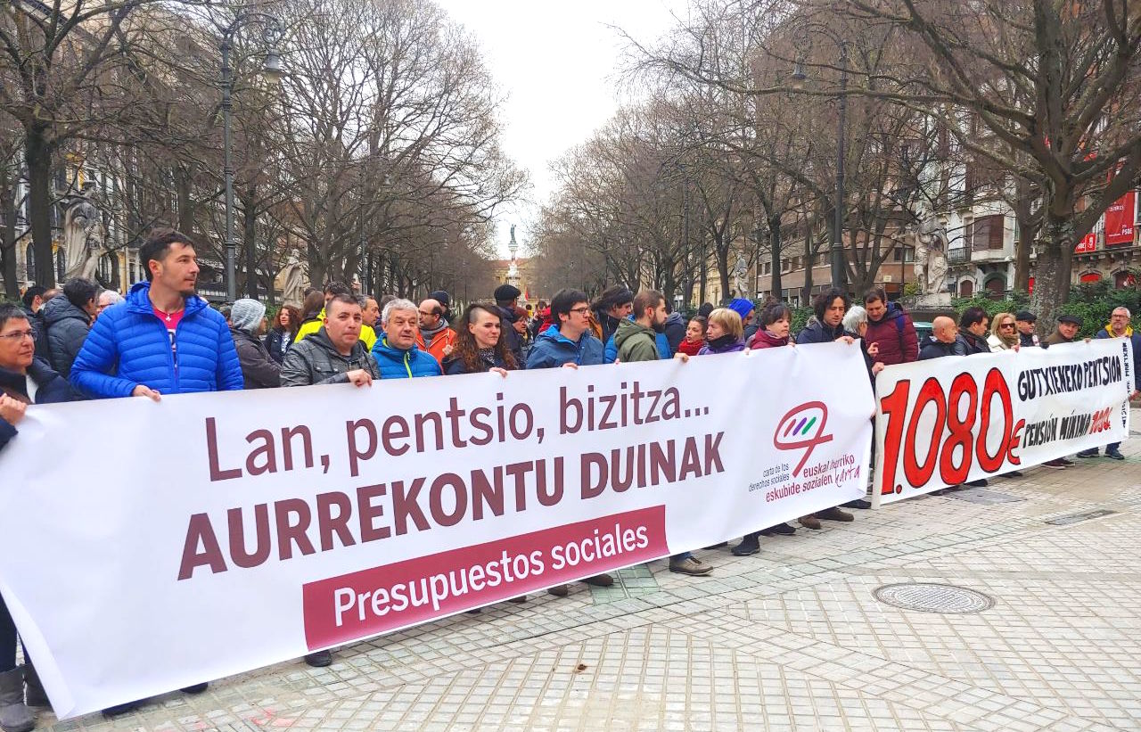 Euskal Herriko Eskubide Sozialen Kartak deituta, Nafarroako Parlamentuaren aurrean mobilizatu gara, aurrekontu duinen eta sozialen alde. 2020. urteko aurrekontuek ez dituzte bermatzen gizartearen gehiengoak aldarrikatzen dituen lan, pentsio eta bizitza duinak, eta horregatik eraman dugu gure salaketa Parlamentuaren atarira.