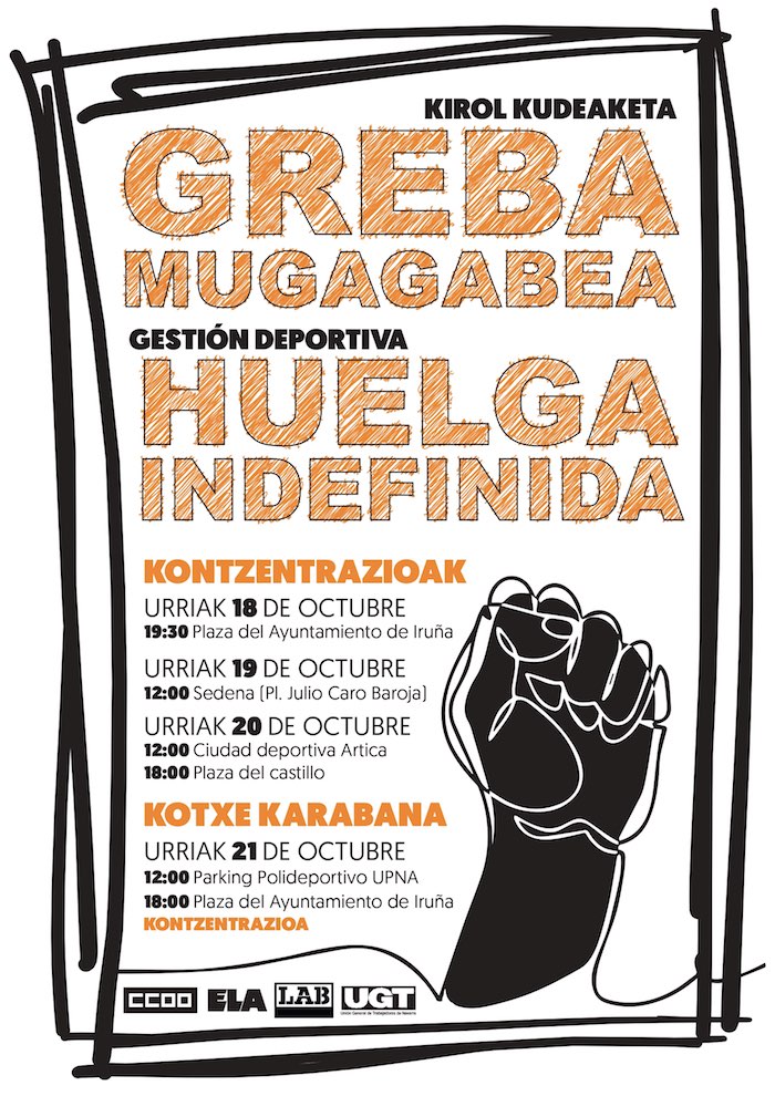 LAB sindikatutik berretsi egiten dugu Kirol Kudeaketaren sektoreko greba mugagabearen deialdia. Gaur hasiko da, urriaren 18an. Izan ere, Orkoienen hobekuntzak lortu ahal izan badira, hori izan da bertako langileek grebarekin bat egiteko erakutsi duten asmo irmoarengatik. Gainontzeko kiroldegietan ere posible izanen da.