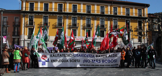 SATSE, ELA, LAB, SME, UGT, CCOO y ESK sindikatuok aurrera daramagun mobilizazio agendaren barruan, pasadan martxoaren 5ean, TOPA taldearekin batera kontzentrazioa burutuko genuen Tolosan, kalitatezko Osasun sistema publikoa aldarrikatzeko eta salatzeko Tolosa dela eskualde bakarra non erreferentziazko ospitalea kontzertaturiko ospitale pribatua den.