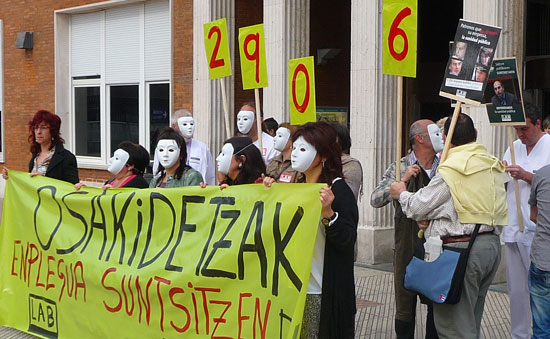 LAB sindikatuak Gurutzetako Ospitalera eraman du Osakidetzan PNV aurrera eramaten ari den lanpostu publikoen suntsiketa. Azken bi urteotan, 2906 lanpostu desagertu egin dira, murrizketen eta lan-ordutegiaren luzapenaren ondorioz.