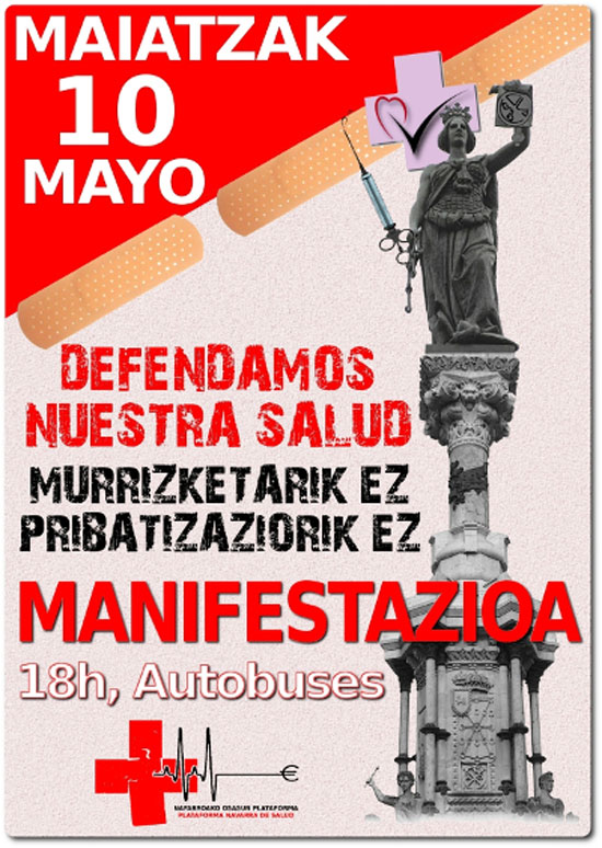 Nafarroako Osasun Plataformak deituta, bihar hilak 10, manifestazioa dago deituta Iruñean "Defendamos nuestra salud. Murrizketarik ez, Pribatizazioarik ez" lelopean. Osasunbidea okerrera daramaten erabakien aurrean LABek, Plataformako kide moduan, bertan parte hartzeko deia luzatu nahi du.