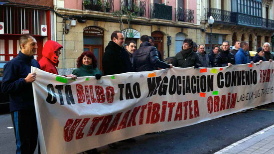 OTA-BIlbaoko langileek elkarretaratzea egin dute zerbitzua ematen duen enpresaren aurrean, BILBAO OTA UTE (GERTEK) alegia. Negoziazio kolektiboak akordio bat erdiestea aldarrikatzen dute, erreformaren aurrean hitzarmena blindatuko duen akordio bat, eta eros ahalmenaren galerarik ekarriko ez duena.