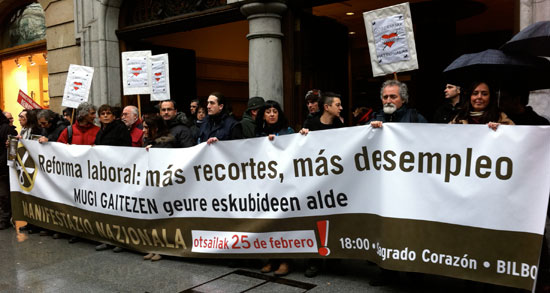 Gaur goizean kontzentrazioa burutu dute sindikatuek eta gizarte mugimenduek Confebask-ek Bilbon duen egoitzaren atarian. Bertan, parodia egin dute patronala eta gobernuaren arteko “maitasunezko harremana” irudikatuz eta otsailaren 25eko manifestazioan parte hartzeko deia luzatuz.