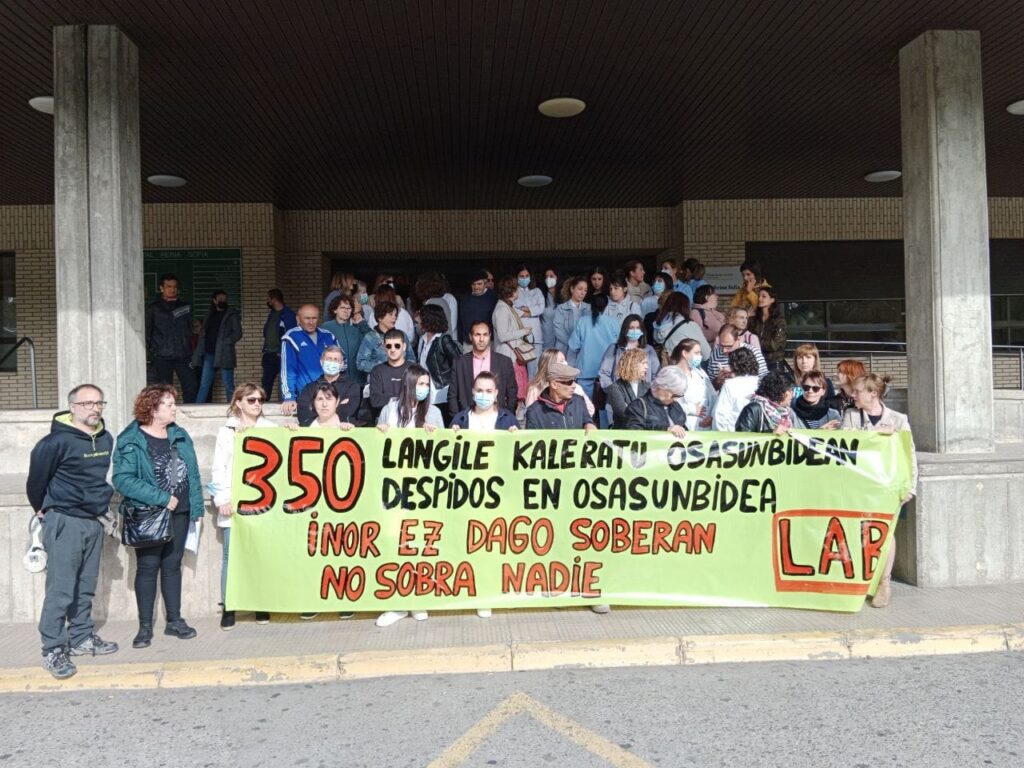 LABek elkarretaratzeak deitu ditu azken egunetan ezagutu dugun Osasunbideko 350 langileren kaleratzea salatzeko. Mobilizazioak Nafarroako hiru ospitale nagusietan egin dira; Iruñean, Lizarran eta Tuteran, hain zuzen ere.
