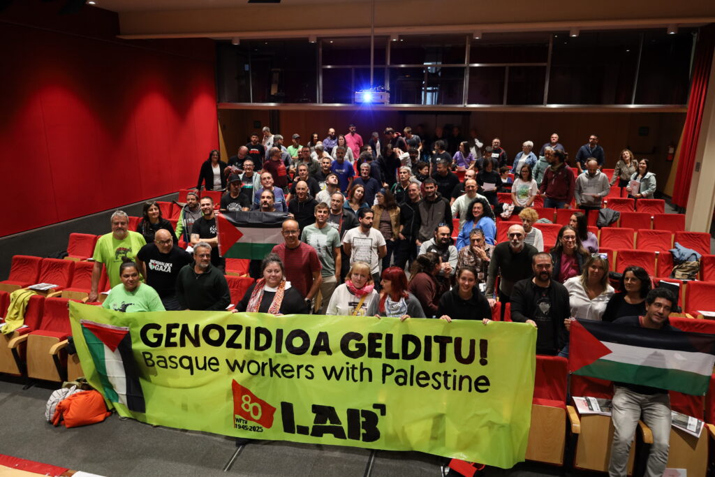 Izan ere, Hamasek eta Israelgo Gobernuak su-eten akordioa sinatu dute, bai, eta LABek erabateko errespetuz hartzen ditu eta hartuko ditu Palestina ordezkatzen duten eragileek unean une hartzen dituzten erabakiak. Hala ere, elkartasun internazionalistaren ikuspegitik, Israelgo Gobernuak su-etena gauzatu dezan maila guztietan presio egiten jarraitu beharra dagoela uste du sindikatuak, batetik, eta Palestina hamarkada luzez pairatzen ari den kolonizazio eta genozidioa amaitu behar dela, bestetik, eta Palestinaren autodeterminazio eskubidea gauzatu.