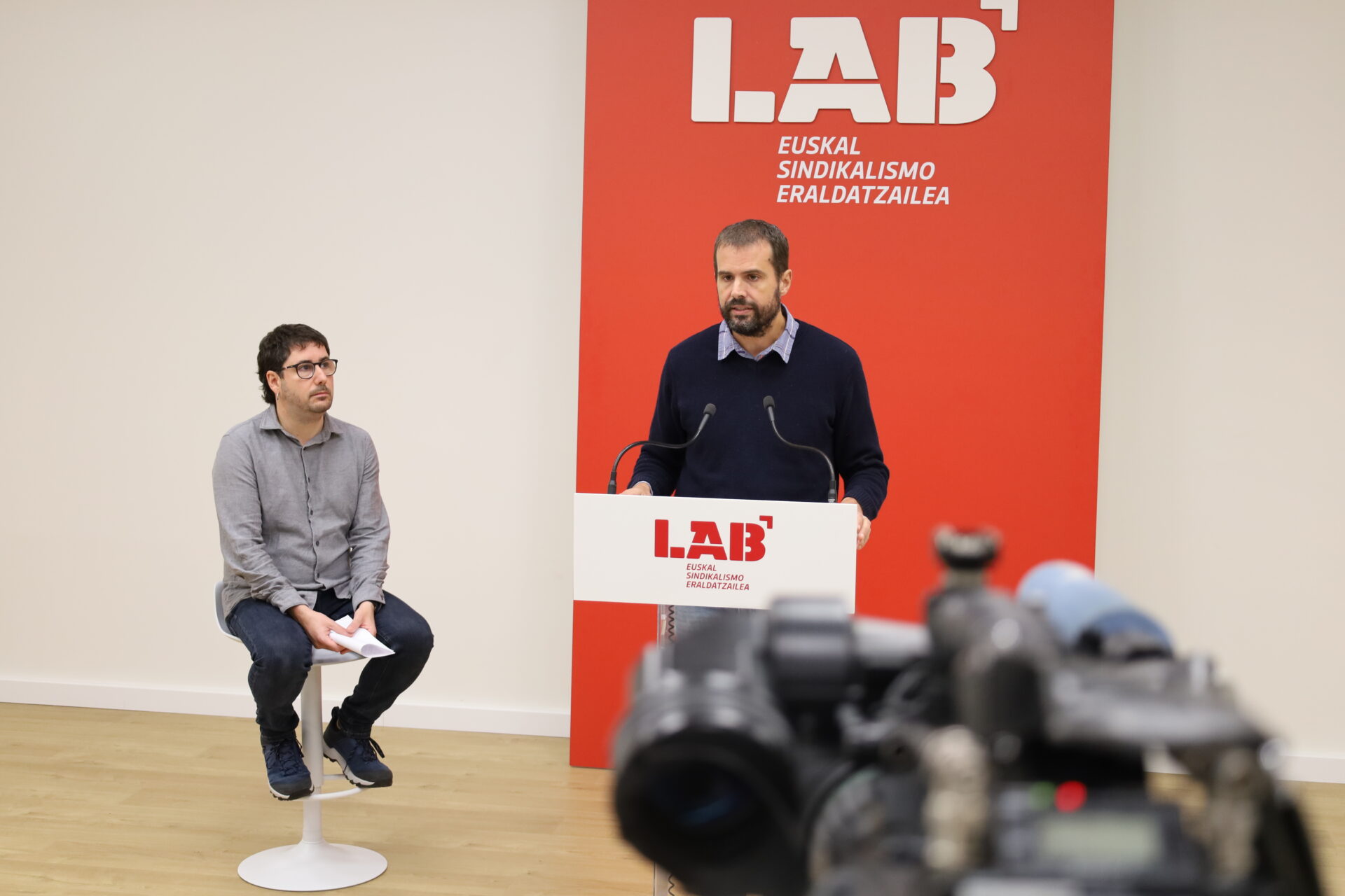 LABeko Koordinatzaile Orokor Igor Arroyok eta nazioarteko arduradun Koldo Saenzek prentsaurrekoa eskaini dute Bilbon, urriaren 15eko mobilizazioaren balorazioa egin eta aurrera begira ekimen berriak iragartzeko.