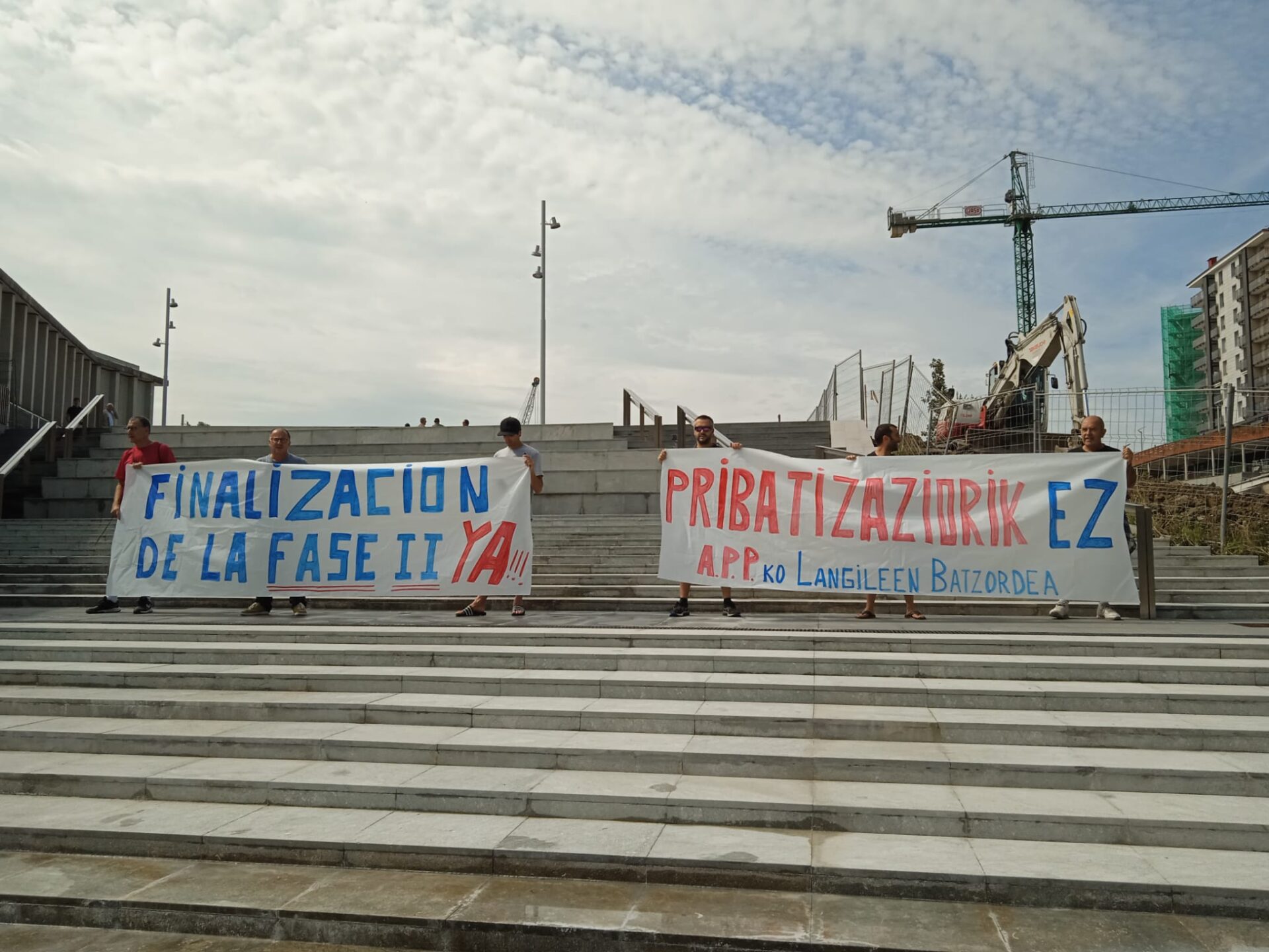 Baina guretzat larriena da portuko langileok garen aldetik, berandu eta gaizki ez ezik, lonjaren kanpoaldea amaitzeaz arduratu direla soilik, eta barrualdea, lantokia dena, bigarren fasea deiturikoa, hau da,lonjaren erdia, ez dela gauzatu…eraikinaren erdia barrutik hutsa dago eta beste erdian egiten ari da lana, langileentzako eta erabiltzaileentzako baldintza penagarrietan.