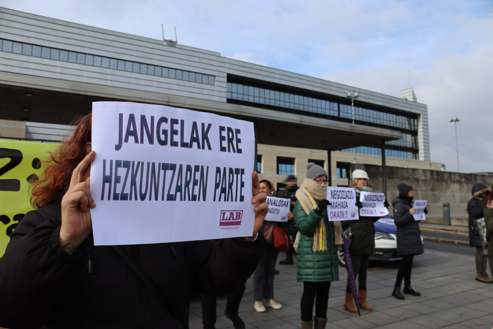Batzorde paritarioan ordezkaritza duten hiru sindikatuok (LAB, CCOO, UGT) irmo salatzen dugu bahitu gisa erabili nahi gaituztela Eusko Jaurlaritzaren aurrean, beren interesetarako. Erabaki horrekin, kudeaketa zuzeneko eskola-jangelen hitzarmen kolektiboa urratzen ari dira nabarmen.