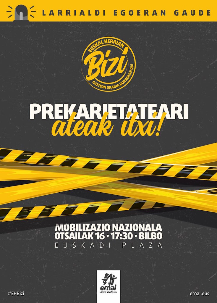 Otsailak 16an, 17.30ean, patronalaren sinbolo den Iberdrola dorre paretik abiatuko da Ernai gazte antolakundeak deitutako mobilizazio nazionala, "Prekarietateari ateak itxi!" leloarekin. LABek babesa erakutsi dio mobilizazioari.