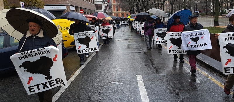 Bilboko biharko manifestazio nazionalaren atarian, LAB kalera irten da gaur goizean, esukal preso eta iheslari politikoen alde. Euripean, hirigunea zeharkatu dute hainbat lagunek, banderolak eskuetan.