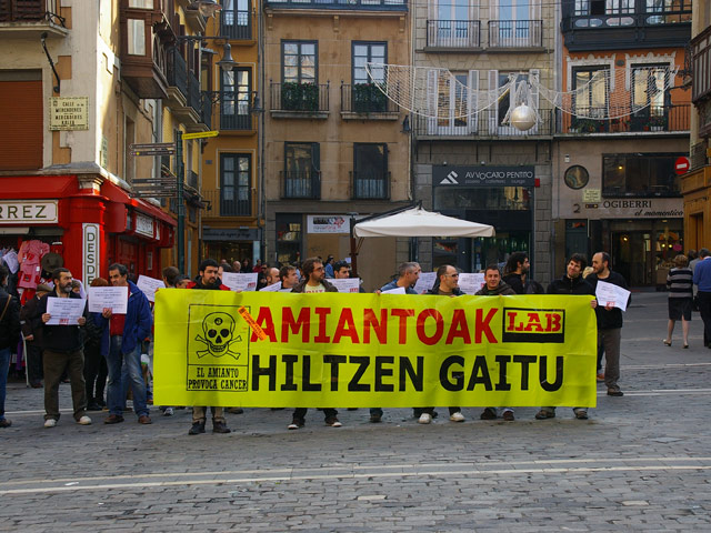 Eguerdiko 12:30-etan LABek mobilizazioan egin du Iruñean. Mobilizazioaren helburua kartzinogenoa den amiantoaren inbentario bat Iruñeko udalari eskatzea izan da. Gogoratu behar da amiantoa oso erabilia izan zela azkenengo hamarkadetan, eta gaur egun bazter guztietatik banatua dagoela. Amiantoa non dagoen ezjakiteak langile asko eta biztanle oro arriskuan jartzen du.