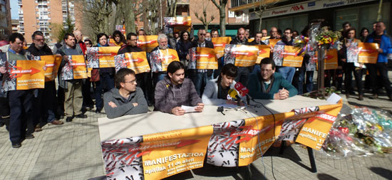 60 Langile Batzordek, 100 atal sindikalek, CCOO, LAB, UGT, STEE-EILAS, HIRU, ESK, USO, CNT, CGT, SATSE, SAE eta SIPLA sindikatuek eta 15 eragile sozialek (Askapena, Elkartzen, Zazpigarren alaba auzo elkartea, Interbarrios,Ernai, Ikasle Abertzaleak, Gazte Blokea, Amaru elkartea, Ezker Abertzalea, Ezker batua, Pensionistak martxan, Pensionistak lab eta ccoo, Osakidetza guztiona, Ikasleen Sindikatua, Langabetuak… ) "Araba borrokan" ekimena aurkeztu dute herrialdean ematen ari den enplegu suntsiketa eta murrizketei eta haien arduradunei aurre egiteko. Datorren apirilaren 11rako manifestazio iragarri dute.