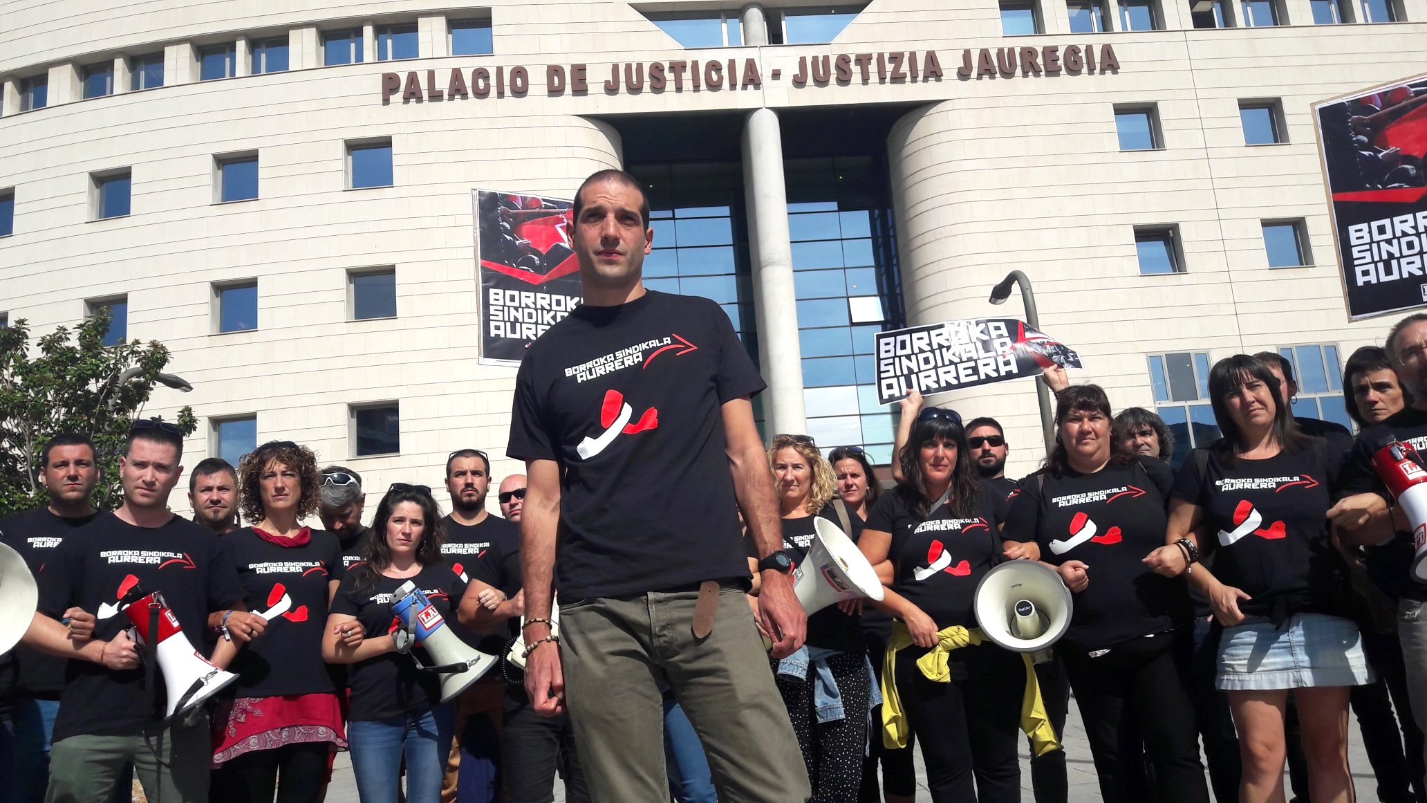 Protesta baketsu batean parte hartzeagatik, LABeko kide Imanol Salinas espetxeratu nahi dute, helegitearen erabakiaren zain, 21 hilabeteko kartzela zigorra ezarri baitiote 2018an La Sangiovesako lan gatazka salatzeagatik. Imanol Salinasi babesa erakusteko, eta azken hilabeteotan handitu den jazarpen sindikala salatzeko, Iruñeko Justizia Jauregiaren atarian bildu gara, eta langileriari kalera irtetzeko deia luzatu diogu. LABeko idazkari nagusi ondoko Igor Arroyoren hitzetan, "ez gaituzte geldituko, ez dute LABen borroka sindikala baldintzatuko. Injustizia non, LABen megafono bat han egongo da horri aurre egiteko".