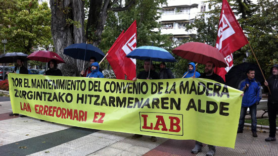 Hoy, día 4 de Noviembre, se está llevando a cabo en Gasteiz un juicio contra la decisión unilateral del SEA de dar por finalizada la negociación del Convenio de la Madera para Araba. Mientras que el SEA da por roto el debate sobre el Convenio Sectorial de la Madera, buscando cobertura legal a la aplicación de la reforma laboral, desde LAB no tiramos la toalla en la defensa de un Convenio Provincial para el sector de la Madera.