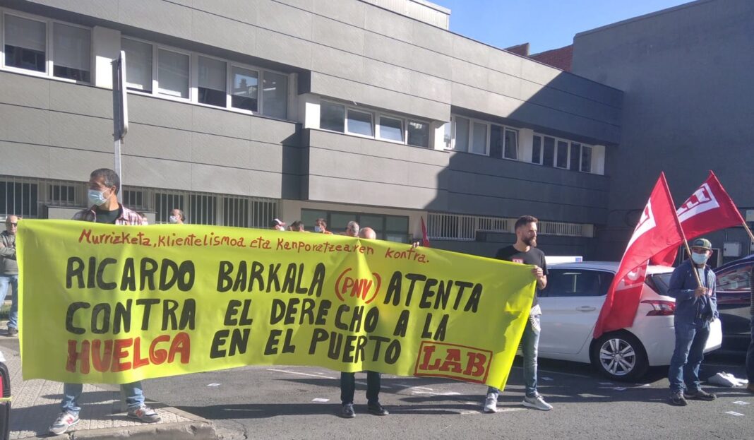 LABek deituta, Bilboko Portuko langileek mobilizazioa egin dute Santurtzin, Portuko Agintaritzako presidente Ricardo Barkalak zamaketako, barne-trafikoko, kontsignatarioetako, garraioko eta Portu Agintaritzako langileekin izan duen jarrera salatzeko.