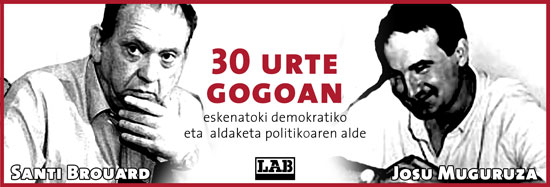 Santi Brouard eta Josu Muguruza, 30 eta 25 urte erahil zituela gerra zikinak. Bihar, azaroak 15 Euskaldunan eta azaroaren 20an Bilboko Errekalden omenaldia jasoko dute bi militante abertzaleek. "Apur ditzagun kateak" lelopean Sortuk omenaldia egingo die bihar Bilboko Euskaldunan arratsaldeko 18:00etan.