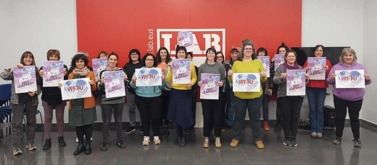 Munduko Federazio Sindikaleko Herrien Koordinakundetik denok libre izango garen mundu justu bat eraikitzeko, lantokiak emakumeentzako espazio seguru eta erosoak izan behar dutela adierazten dugu. Jazarpena, lanaldi hirukoitzak eta genero-arrakala dauden bitartean, klase sindikalgintza soberanistak zorra izango du emakume* langileekin, eta zor hori ordaindu egin behar da.