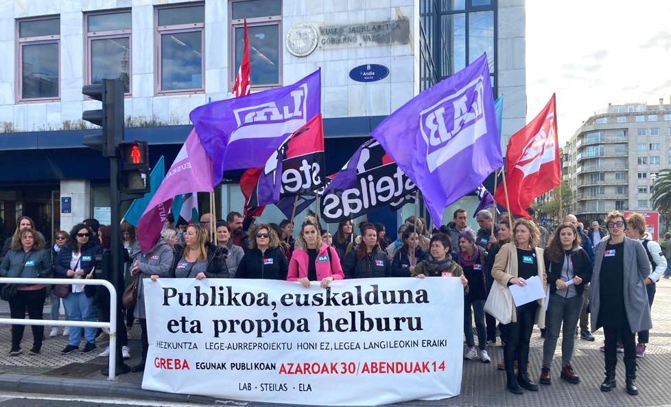 LAB, ELA eta STEILAS sindikatuek, EAErako hezkuntza lege aurreproiektuari ezezkoa esateko, beraien eskaerak plazaratzeko eta Eusko Jaurlaritzak Legebiltzarrera bidali beharreko behin betiko lege-aurreproiektuan zein ondorengo Hezkuntza Legean eragin eta eskaera horiek jasoak izateko asmoz mobilizazio eta greba dinamika bat dute adostua. Gaurko elkarretaratzea dinamika horren baitan kokatzen da.