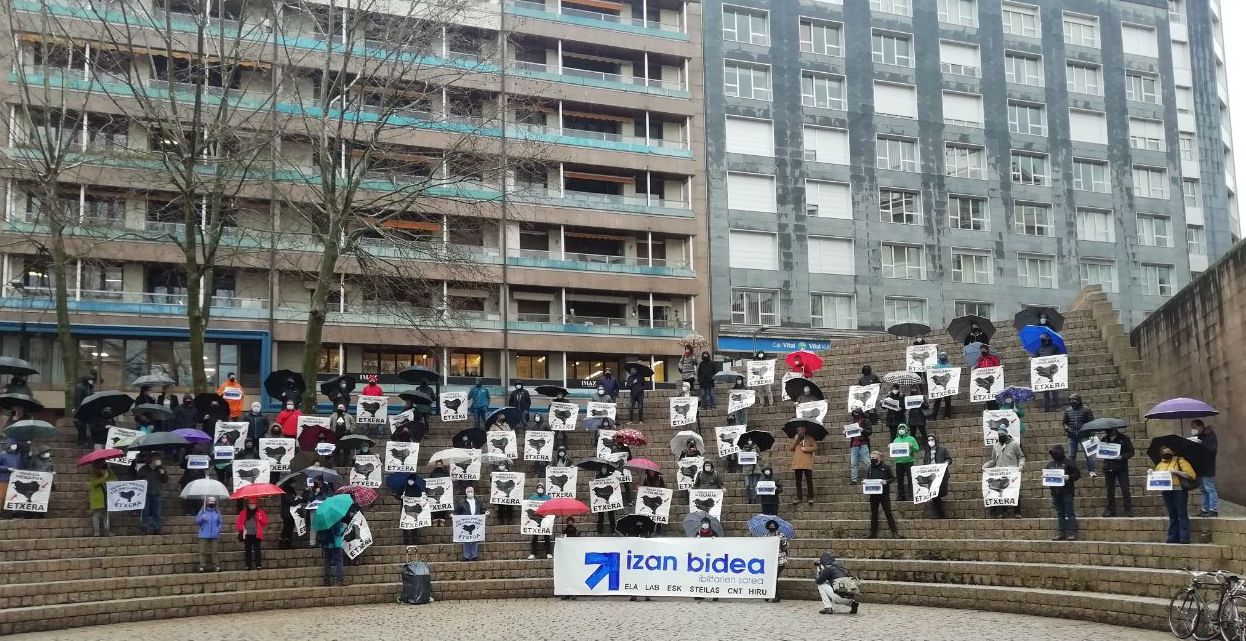 LAB, ELA, ESK, STEILAS, CNT, HIRU sindikatuek, gaur Gasteizko Foruen Plazan egin dugun elkarretaratzearen bidez, bat egin dugu Izan Bidea ekimenarekin, espetxe-politika berri bat eskatzeko.