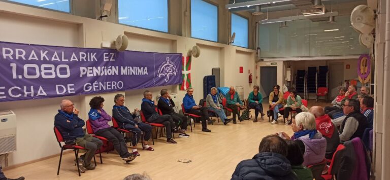 Itxialdia egiten diharduten pentsiodunen borroka babestu dugu eta astebururako iragarritako mobilizazioetan parte hartzeko deia luzatu diegu herritarrei
